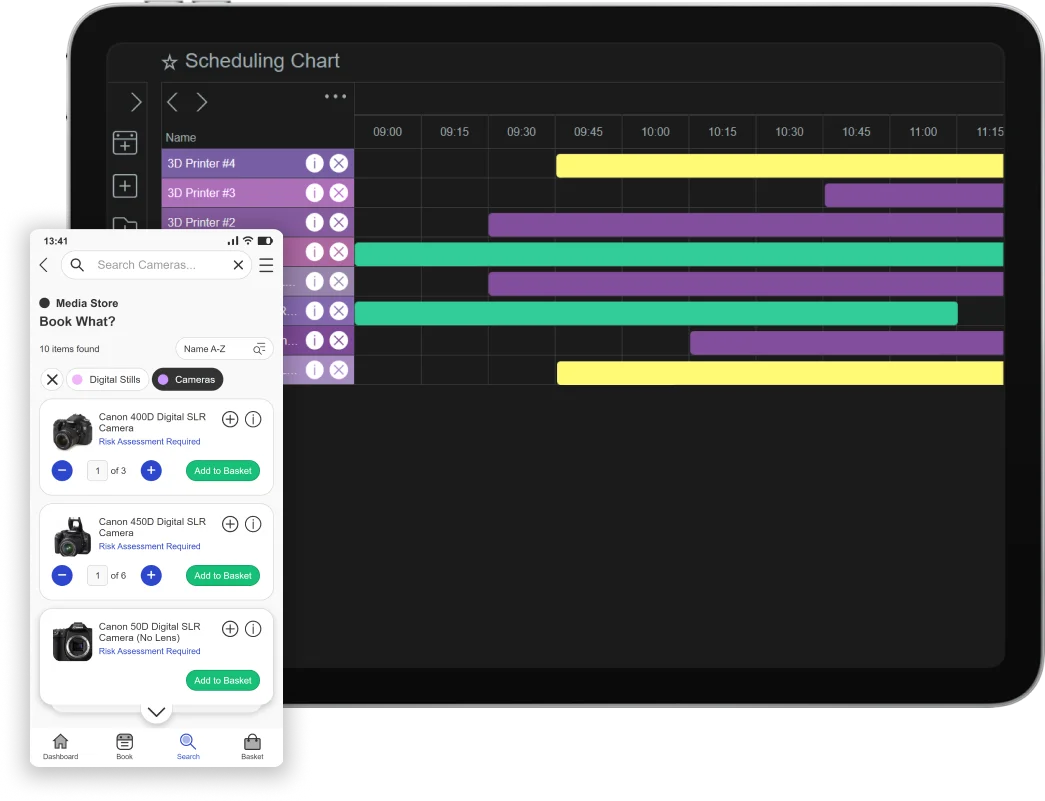 Book and manage personnel, equipment, rooms, labs and computers easily via your phone, tablet or computer.