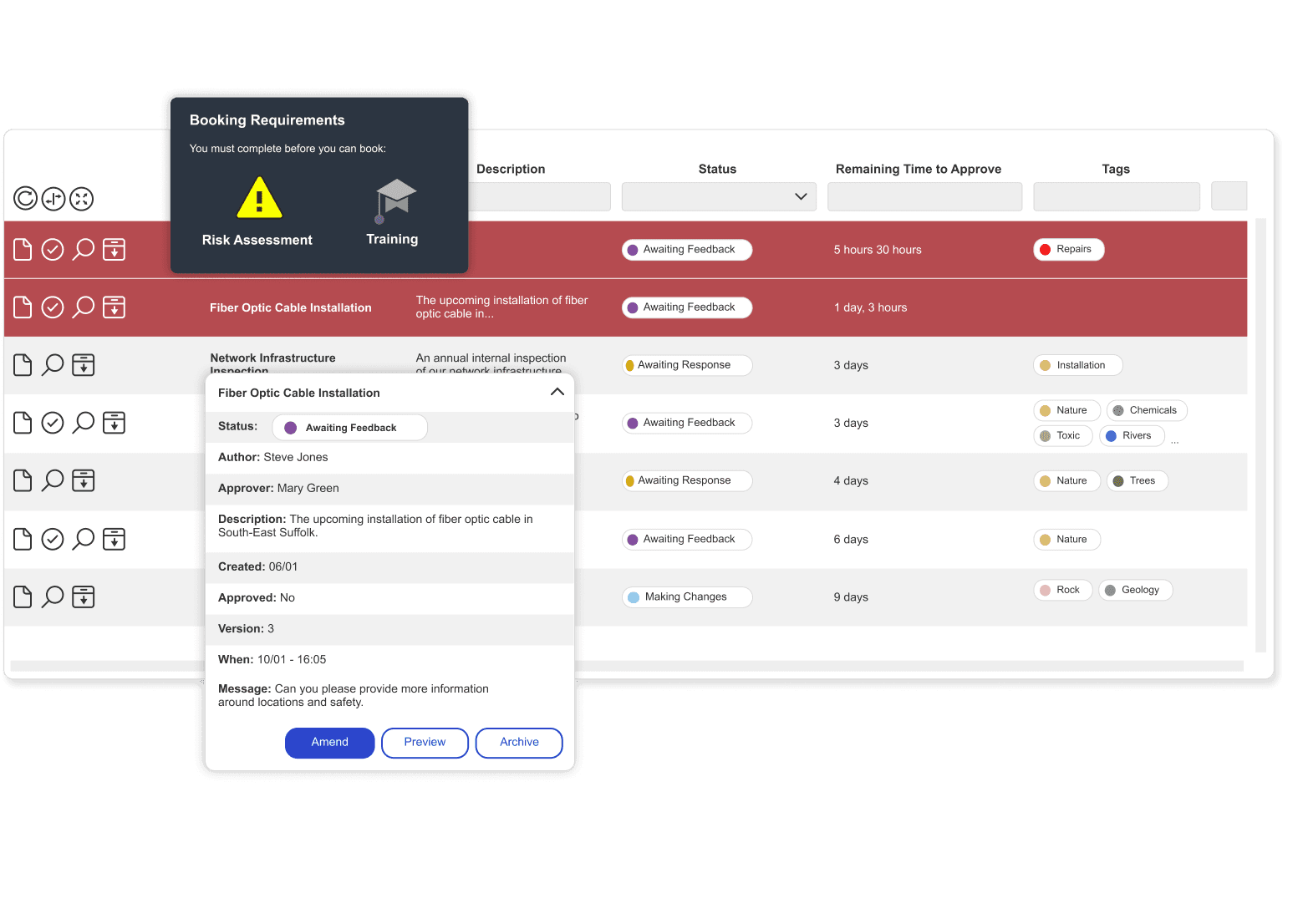 Smarthub comes equipped with a robust compliance and risk assessment tool that ensures all safety protocols are adhered to before equipment is booked or deployed. For instance, before using tower-climbing equipment or heavy machinery, teams can submit their risk assessments through Smarthub.
