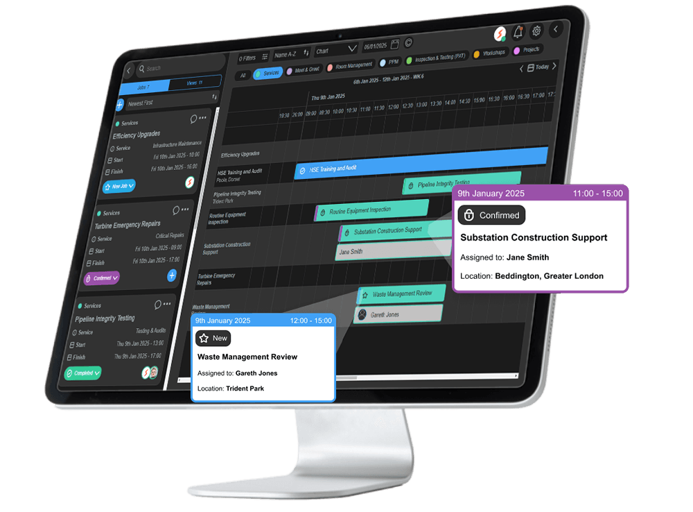 With mobile access, teams can update tasks, book equipment, and monitor their progress on the go, ensuring efficient operations wherever they are. From van-based operations to remote locations, everything stays linked up and up to date.