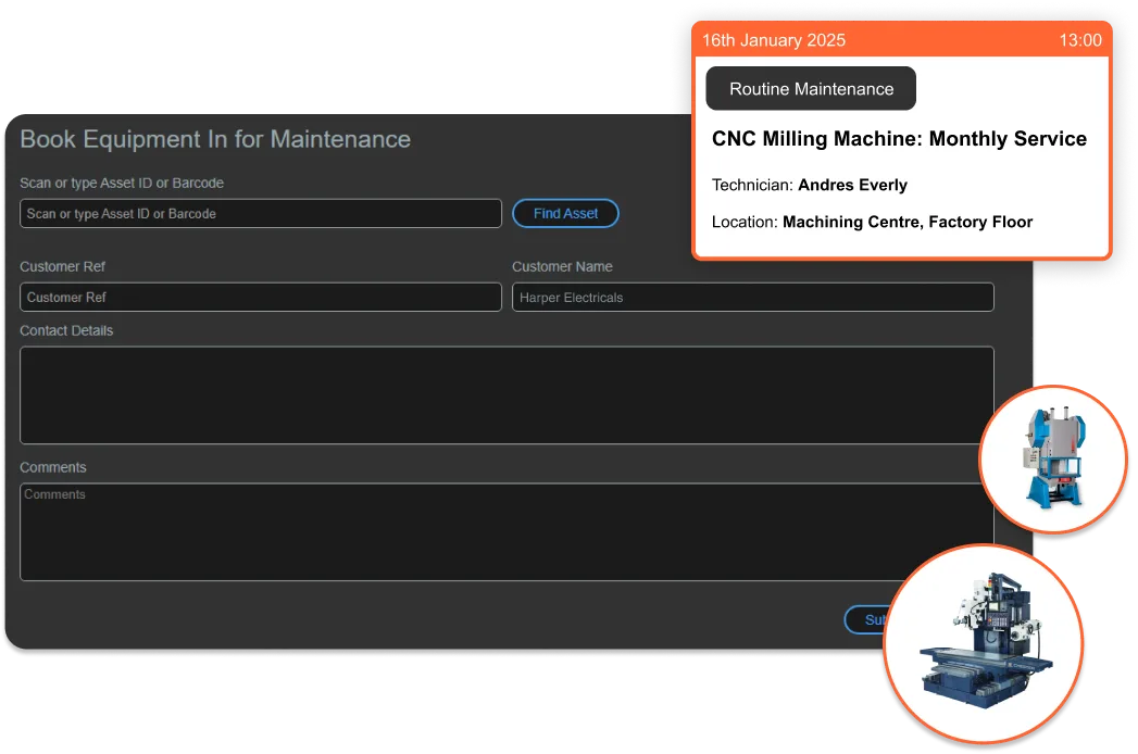 Managing your tools, machinery, and personnel is critical when it comes to maintaining a competitive edge. Smarthub is an all-in-one solution for simplifying equipment tracking, maintenance, and resource management. As an innovative and agile manufacturing management software platform, it keeps your operations running smoothly without needless hassle. Get in touch with us today for a free product evaluation and see how our booking software can help your manufacturing company. Unexpected breakdowns cost you time and money. Smarthub’s automated maintenance schedules help prevent these disruptions and keep your equipment in top condition. Every piece of machinery comes with a detailed maintenance history, allowing you to spot trends and identify items that are serviced frequently. You can use this insight to make smart decisions about future investments. Automated notifications for upcoming servicing or parts replacements mean you’re always compliant with industry safety standards, too. Use Smarthub’s advanced reporting tools to get valuable insights into equipment usage and resource allocation. Our customisable reports mean you can identify inefficiencies in equipment usage and boost your resource allocation. For example, by analysing machinery booking trends, you can determine if additional assets are needed to meet production demands or if current resources are being underutilised. In-Depth Analytics Keep track of your equipment’s performance, reduce waste, lower costs, and boost operational efficiency. With a comprehensive overview of all your assets, you can be proactive in planning production schedules, allocating resources and investing in new tech. Visit the Smarthub page to find out more about our manufacturing equipment booking software. Safety is absolutely crucial in any manufacturing environment. Smarthub has a built-in risk assessment tool to help you maintain compliance with safety regulations. It links directly to high-risk equipment and tasks. Not only does this enhance your workplace safety, but it also confirms that you meet your legal requirements, like COSHH regulations. By connecting risk assessments to individual pieces of equipment, rooms, or processes, Smarthub reinforces compliance at every level of your operation. Smarthub scales with any operation from workshops to industrial plants. Our solutions integrate with your existing systems, providing secure, cloud-based management that grows with you. By optimising your operations, you can significantly reduce downtime and boost your productivity. Get in touch with us today, and we’d be happy to answer any questions you may have. Manufacturing Equipment Booking Software