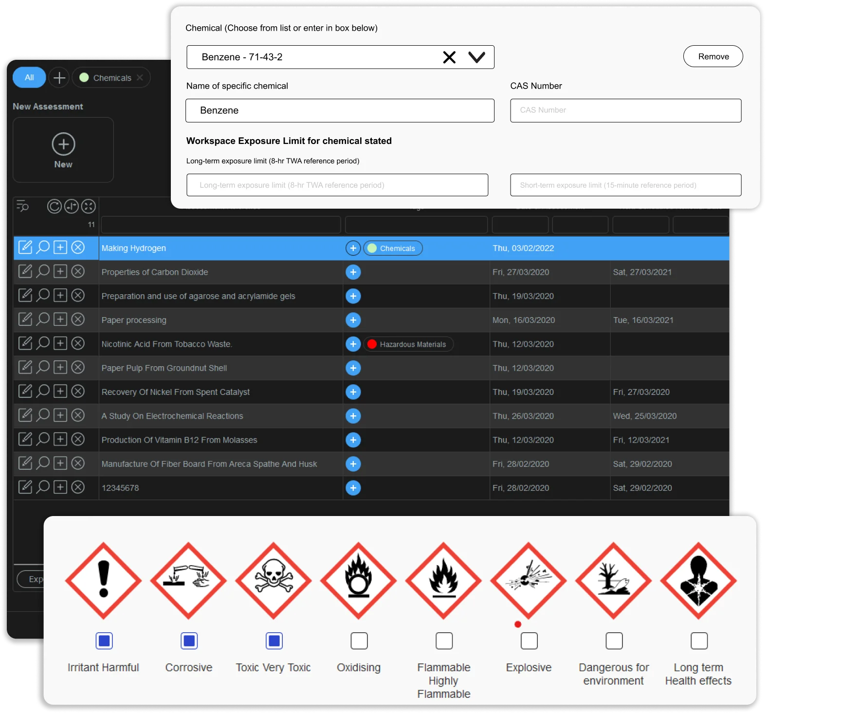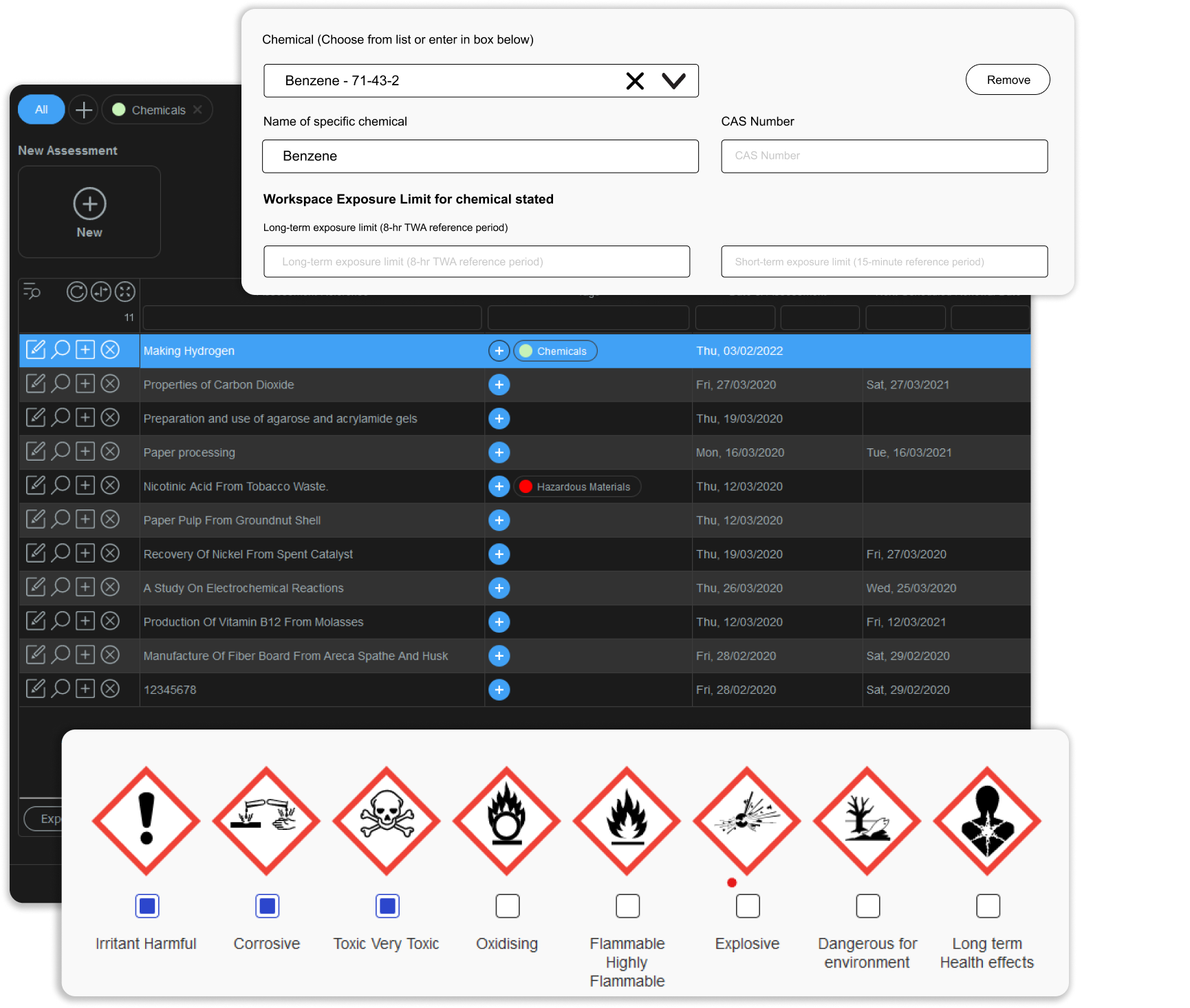 Assess hazards and risks for individual chemicals or upcoming projects. Assign mandatory CoSHH forms for resource booking. Organise, tag and track your documents for easy safety compliance.