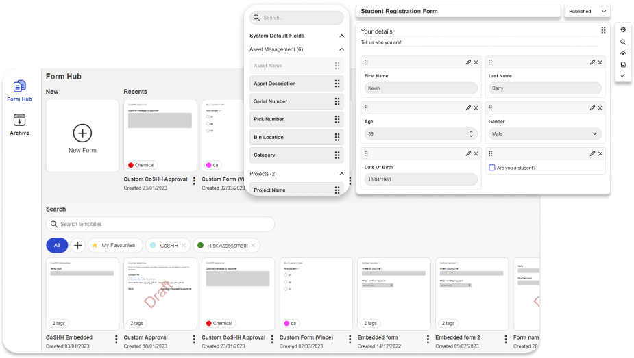 Help to meet your unique organisational needs with our form builder. This new tool enables you to create, modify and distribute custom forms to your users. They can also be integrated straight into our Risk Assessment and CoSHH modules.