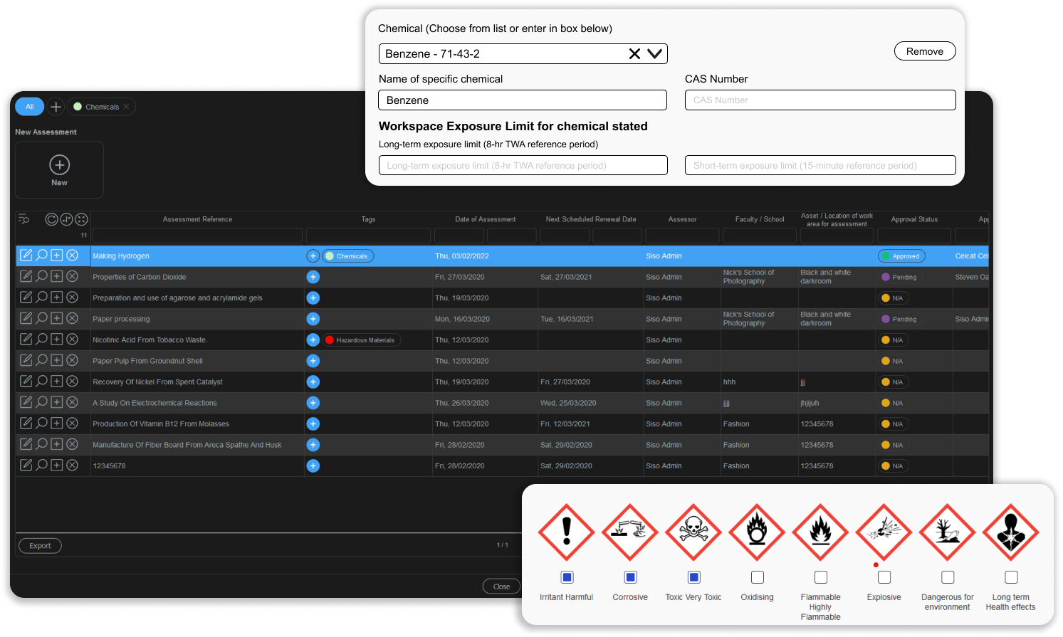 Assess hazards and risks for individual chemicals or upcoming projects. Assign mandatory CoSHH forms for resource booking. Organise, tag and track your forms for easy safety compliance.